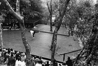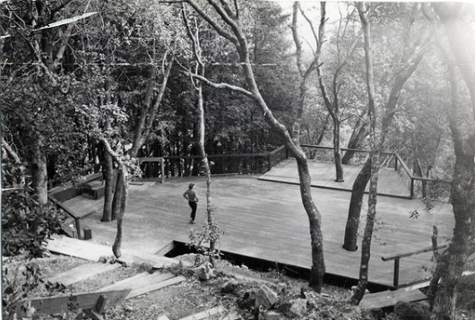 peyzaj mimarı eşi lawrence halprin kaliforniya-marin county’deki evlerinin orman gibi bahçesinde, hafif eğimli arazinin üzerine 1951-54 yıllarında ahşap bir platform, “güverte” tasarlamış. halprin’in 86 yaşında hala üzerinde dans ettiği platformdan kimler geçmemiş ki: yvonne rainer, trisha brown, merce cunningham..