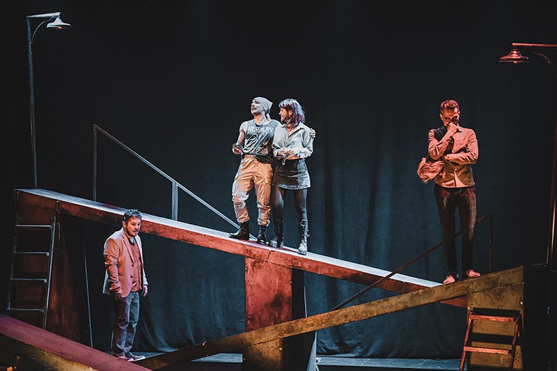 Toplumsal yozlaştırılmayı ve değerlerin yok edilişini ustalıkla eleştiren, gücün her türlü hukuksuzluğuna ve baskısına karşı mücadeleyi destekleyen oyunun parlak ve heyecan verici sahnelenmesinde, tüm karakterleri değişe değişe canlandıran ekibin bitmez tükenmez bir enerjiyle ulaştığı benzersiz tempo, eriştiği kusursuz uyum, oyunun zamanla yarışan yüksek gerilimli atmosferini başarıyla yansıtıyor. Atmosferi harekete dönüştürerek oyuncuların bedenine aktaran koreografileri, günümüzün müzik dilini ustalıkla yansıtan rap besteleri, özellikle de Kemal Yazıcı’nın hiçbir sözcüğün güme gitmediği müthiş yorumuyla değme profesyonel rapçiyi kıskandıracak performansı çok etkileyici.