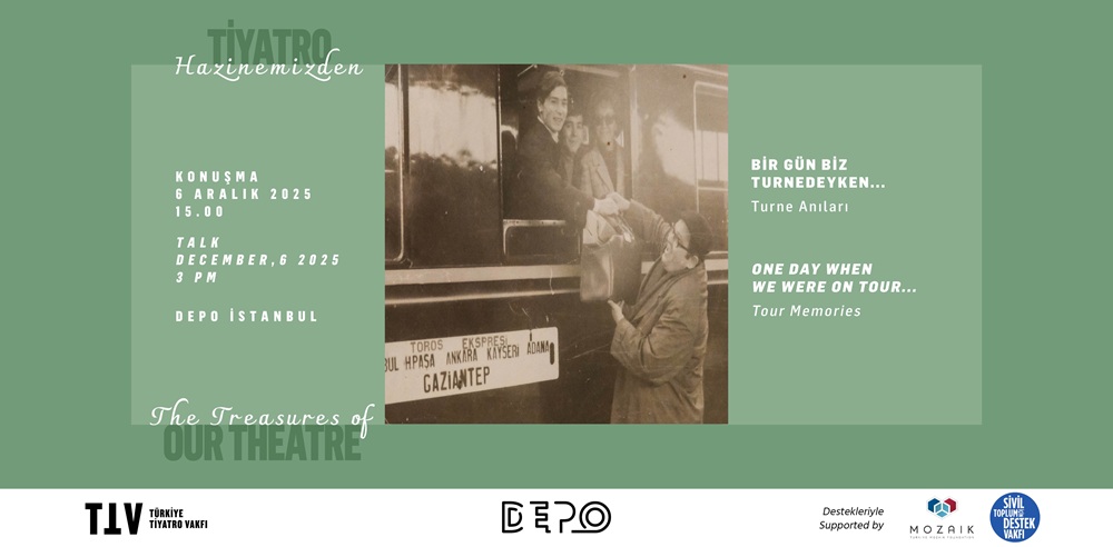 Türkiye Tiyatro Vakfı, Tiyatro Hazinemizden sergisi kapsamında, 6 Aralık Cumartesi günü saat 15:00’te Depo İstanbul’da “Bir Gün Biz Turnedeyken…” adlı bir söyleşi gerçekleştiriyor.