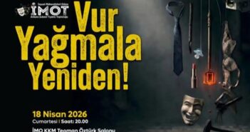 İnşaat Mühendisleri Odası Ankara Şubesi Tiyatro Topluluğu (İMOT), 18 Nisan Cumartesi günü saat 20.00’de İMO KKM Salonu’nda 15. yeni oyunu “Vur/Yağmala/Yeniden” ile seyirci karşısına çıkacağını duyurdu.